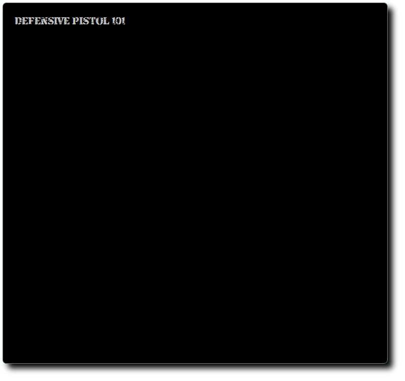 Defensive Pistol 101 gives the shooter the basic component skills useful for defenseive shooting. These skill sets are the foundation on which advanced shooting techniques will build.